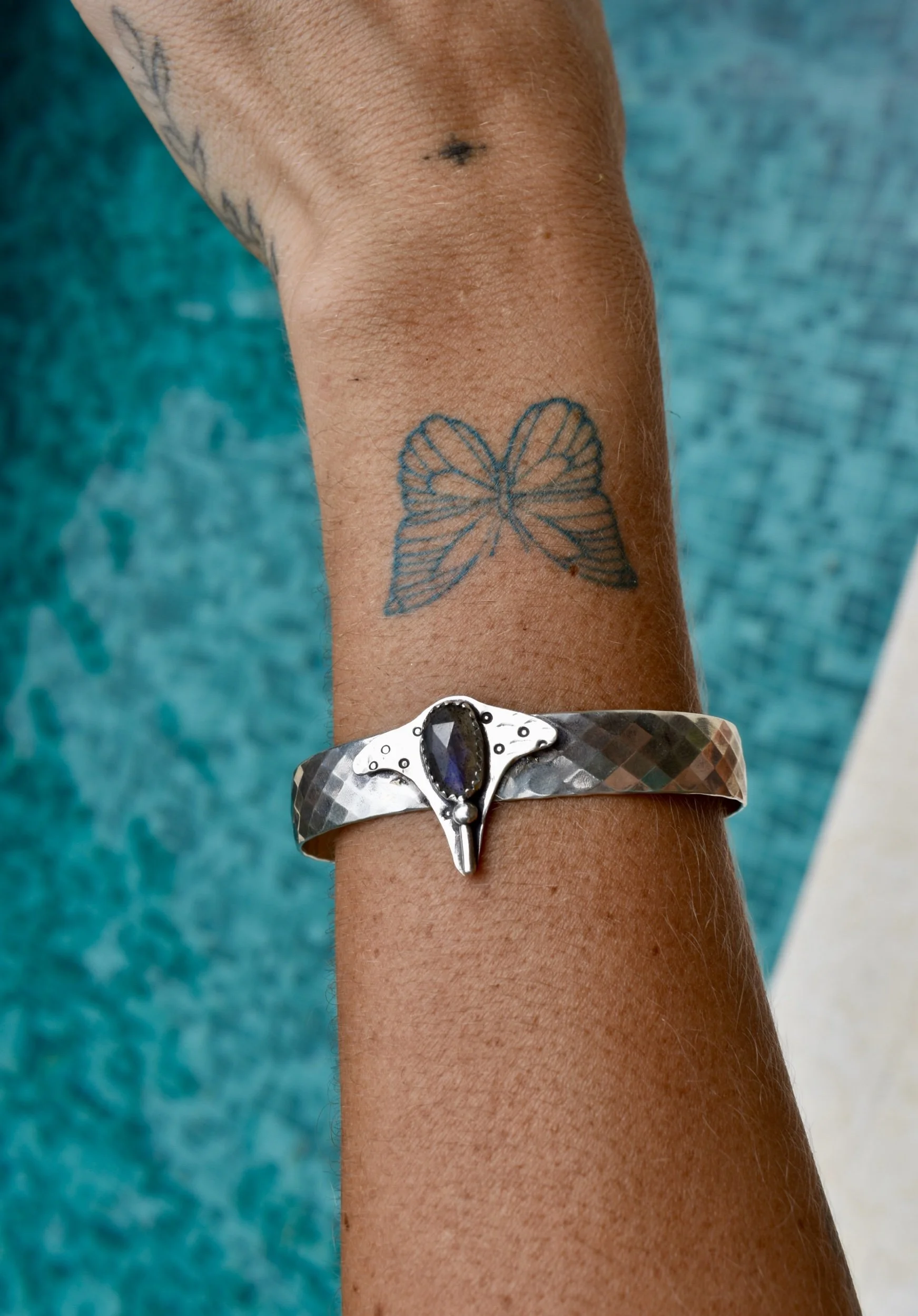 Categories: All RINGS PENDANTS CUFFS EARRINGS All | RINGS | PENDANTS | CUFFS | EARRINGS | Labradorite Stingray Cuff - Size 6 inches $430.00 Labradorite Stingray Cuff - Size 6 inches $430.00